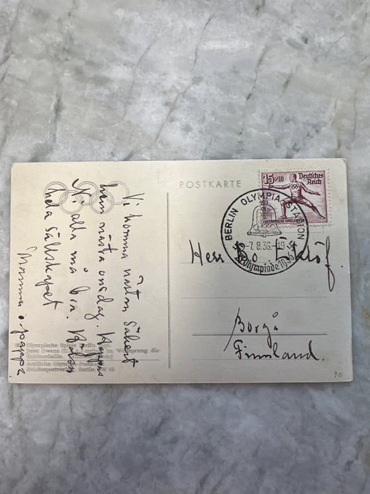 1936 Jesse Owens Olympics Used Postcard