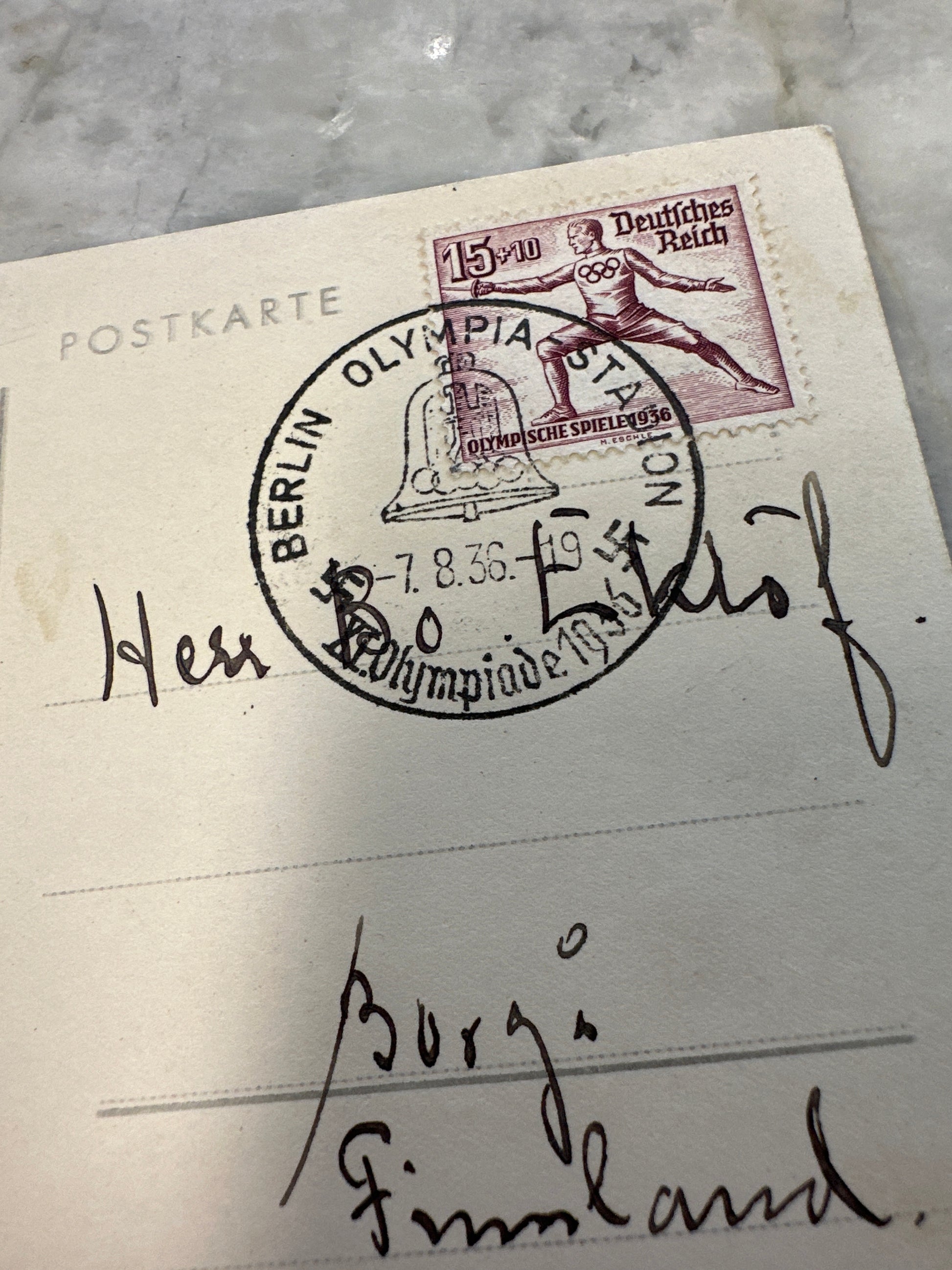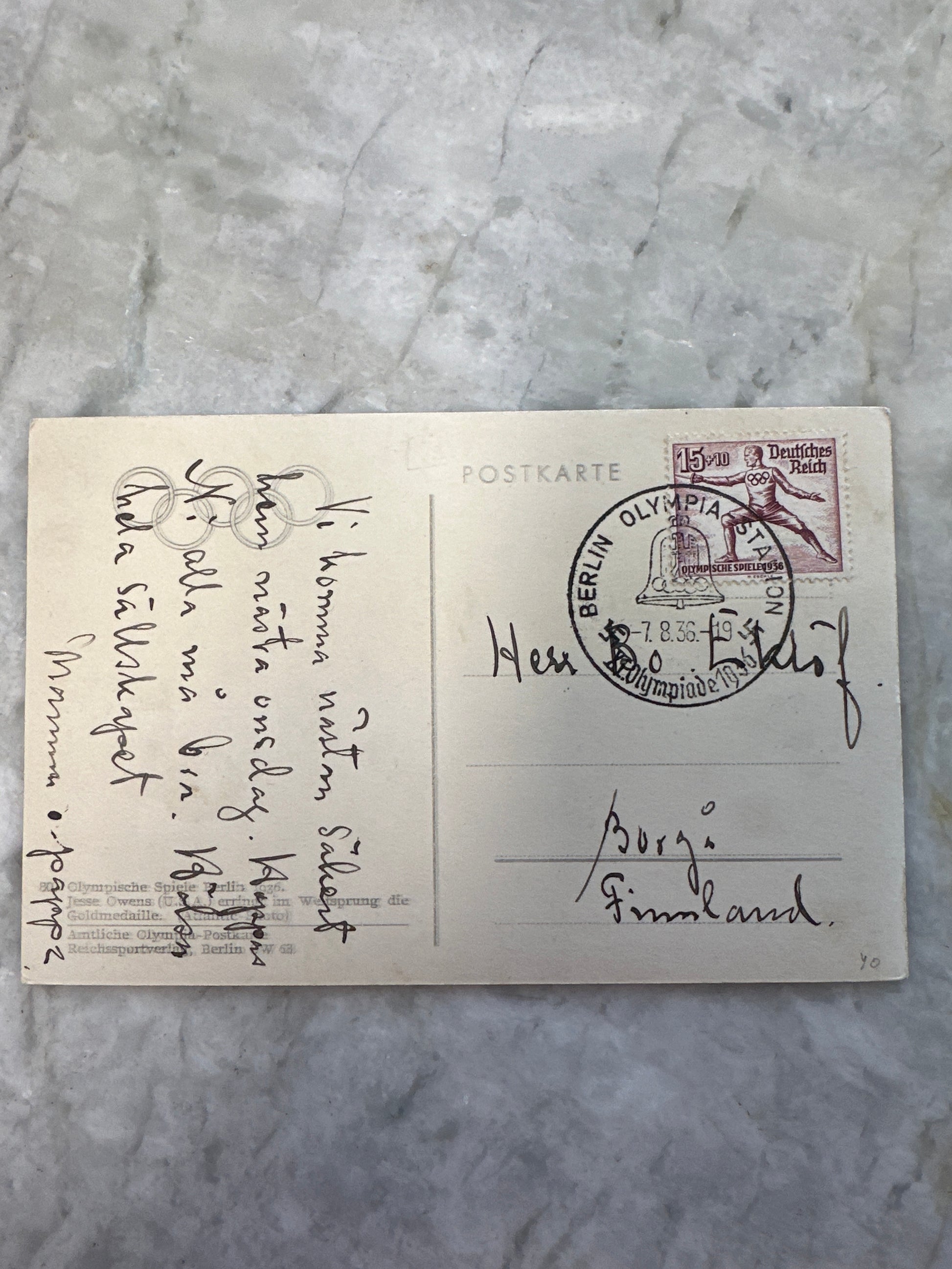 1936 Jesse Owens Olympics Used Postcard
